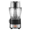 The enlarged feed chute design can accommodate whole potatoes and tomatoes, while the smaller feed chute can accommodate ingredients like carrots.